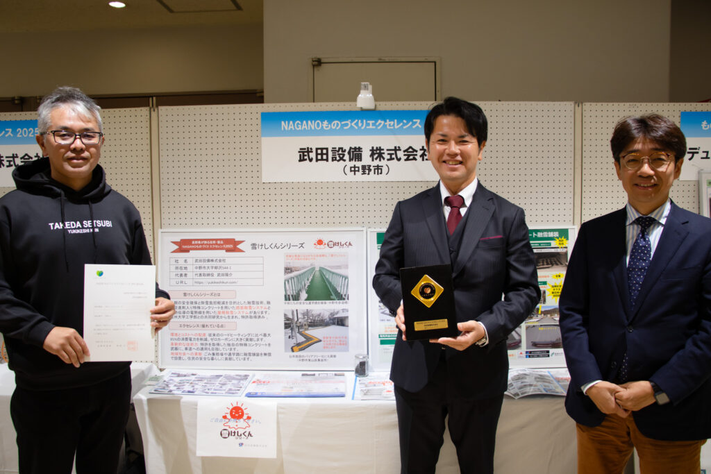 「NAGANOものづくりエクセレンス認定式」で弊社の「雪けしくんシリーズ」が認定された。 阿部守一県知事から認定証を受け取りました。 信州から全国、世界へと雪けしくんシリーズを広めていきたいです。 -